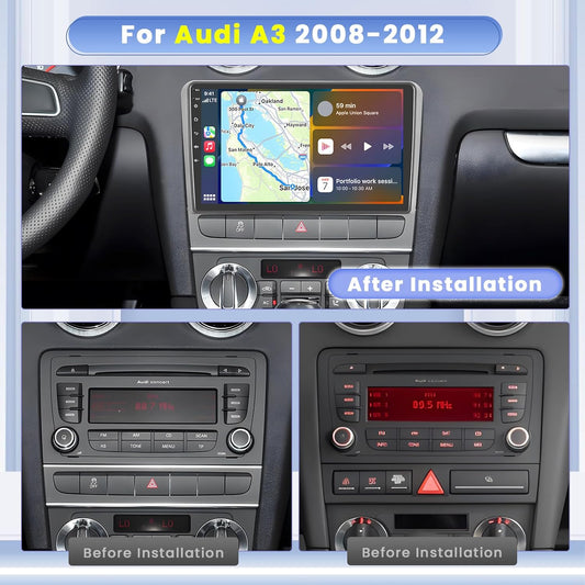 [8 Core 4+64GB] Android 13 Car Stereo for Audi A3 2008–2012, Wireless CarPlay Android Auto, 9" Touchscreen Head Unit, Bluetooth GPS Navigation WiFi FM RDS SWC USB + Rear View Camera