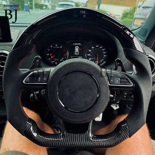 LED Steering Wheel Fit For Audi RS3 RS4 RS5 RS6 RS7 S3 S4 S5 A3 A4 A5 Carbon Fiber Racing Steering Wheel