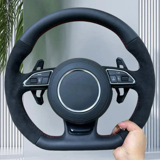 Leather Car Steering Wheel For Audi RS3 RS4 RS5 RS6 RS7 S3 S4 S5 2012-2016 With Paddle Shifters Flat Bottom Steering Wheel